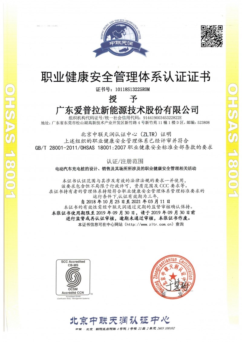 發證機構:   中聯天潤 發證時間 :   2018-10-25