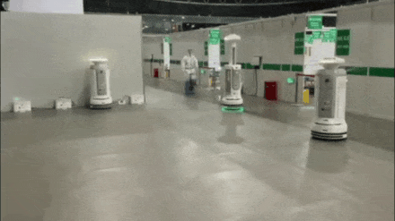“小白,你好!請給手消消毒!”一名疫情防控工作人員路過正在工作的消毒機器人時,靠近機器伸出雙手,很快就完成了一次消毒。搭載紫外線燈、超干霧發生器和等離子空氣凈化等消毒模塊的消毒機器人,能在場館內自由穿梭,可以24小時“不眠不休”。