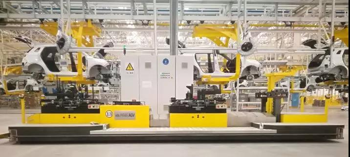 現階段,三豐正在研制新的智能組合分體承載式AGV,由前后各 1 臺承載式 AGV 組成,可分別承載5000kg 以上,有多車聯動、自動激光測距變距、載件轉彎功能、無軌自主導航技術、非接觸式供電、同步控制、精確定位、安全防護、自動上下料等功能,能實現大工件的無人化搬運作業和流水線生產,取代傳統地板式、拖鏈式輸送,滿足商用車、工程機械、農業機械等行業超長、超寬、超大機件的柔性搬運,及其快節拍、高效率的生產需求。