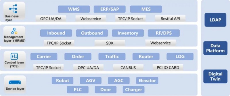 新松自主研發(fā)了強(qiáng)大的移動(dòng)機(jī)器人控制系統(tǒng)——iMRS,不僅能實(shí)現(xiàn)復(fù)雜環(huán)境下的車體控制、邏輯調(diào)度,還能兼容客戶WMS、ERP、MES等上位系統(tǒng),實(shí)現(xiàn)與工業(yè)機(jī)器人、PLC,電梯、智能門系統(tǒng)的協(xié)同作業(yè),賦予移動(dòng)機(jī)器人一顆智慧的大腦。