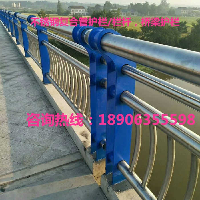 不銹鋼復(fù)合管欄桿,它不僅具有不銹鋼管的豪華美觀和現(xiàn)代氣息,又具有普通碳鋼管的堅韌性。是價昂不銹鋼管的替代品,它與鍍鋅噴塑鋼板立柱配合,做成城市、道橋等的安全欄桿。不僅牢固、大方,且可造型各異,是城市景觀護欄的首選。
