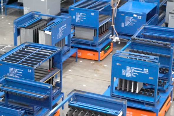 目前已部署潛伏和叉取系列機器人,共計近300臺AMR運行在智能工廠中,覆蓋3個樓層,涉及原材料倉儲、車間產線配送、成品倉儲。
