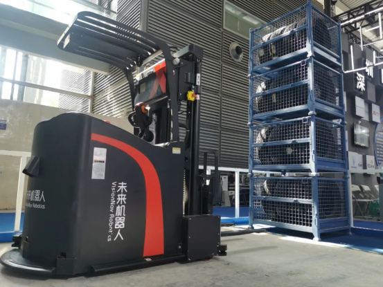 在該階段,大部分叉車AGV企業(yè)的重點發(fā)展方向是通過自動化取代人工叉車場景,所以更加注重技術上的賦能,在車體基礎結構上沒有太多改造。其中,在突破技術場景的企業(yè)當中,以未來機器人為代表,對6層以上料框堆疊、9.4米高位存取以及2.0米窄通道存取等深水區(qū)場景實現(xiàn)攻克,進一步拓寬無人叉車的使用場景與應用方式。