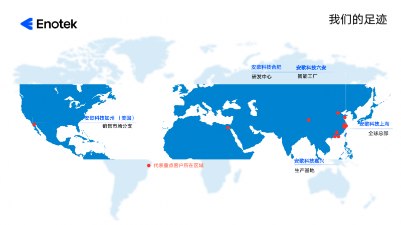 安歌科技Enotek成立于2008年,全球總部位于上海,除了正在建設中的六安數智倉儲物流系統智能工廠,在嘉興還建有生產基地,在合肥設有研發中心,在美國擁有子公司,業務遍及全球20+國家及地區。2023年,安歌科技還將不斷踔厲奮發,持續開拓海外業務市場,讓“中國智造”走向世界。