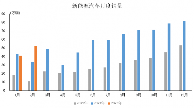2023年1-2月,新能源汽車產(chǎn)銷分別完成97.7萬輛和93.3萬輛,同比分別增長18.1%和20.8%,市場占有率達到25.7%。從汽車行業(yè)發(fā)展趨勢來看,新能源汽車的增長速度未來會進一步加快。