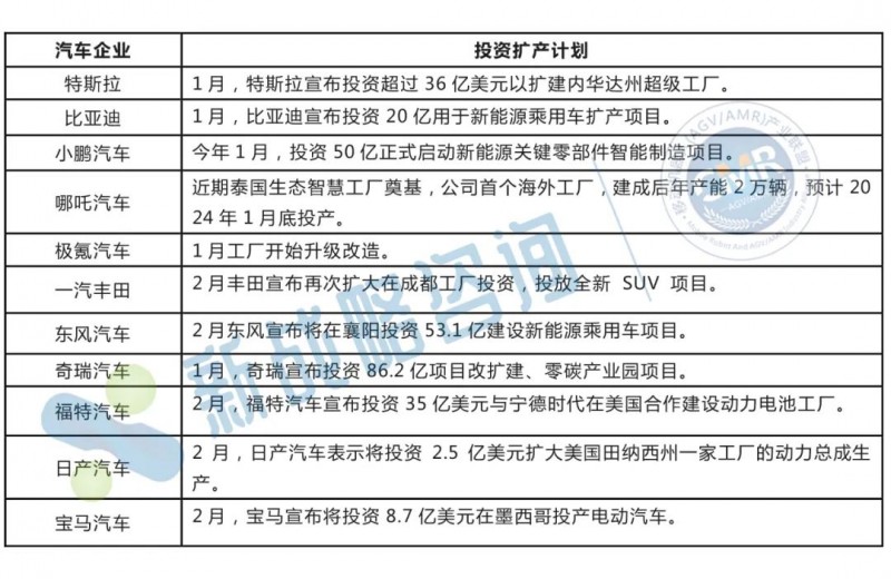 2023年2月,我國汽車市場迎來開門紅,新能源汽車勢頭較猛,全球范圍內(nèi)電車需求增長,不少汽車企業(yè)紛紛宣布擴產(chǎn)計劃,同時,對AGV設備的需求也隨之上升