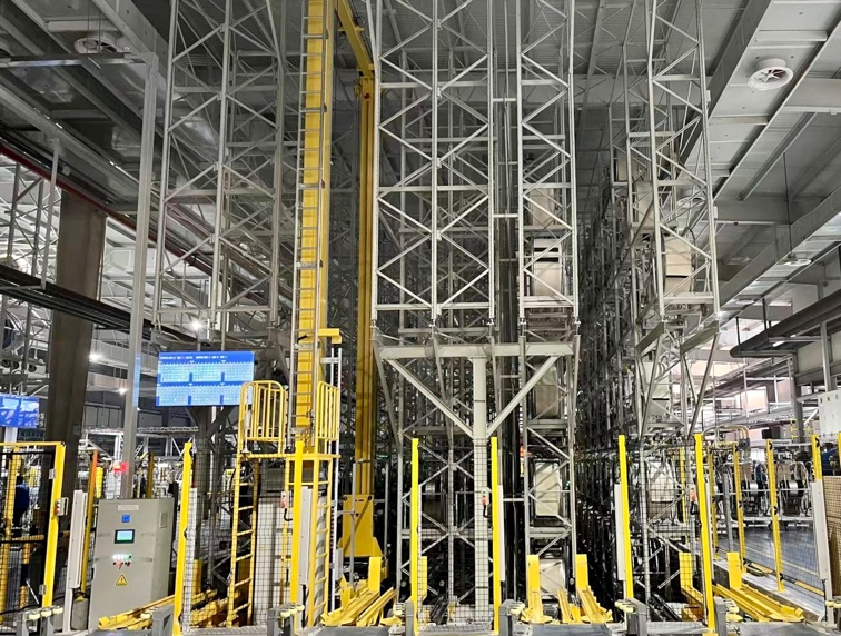 UQI優奇的解決方案將各種半制品物料臺車從半制品加工設備處輸送至相應的緩存立庫,通過WMS系統分配庫位及次序,由堆垛機接駁進行入庫及出庫,再按需輸送到各個成型機處進行生產。從而在緩解廠區空間壓力的基礎上,減少半制品的等待時間,提高生產效率。