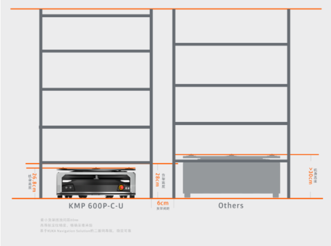 268mm,在同等600kg負載的移動機器人中車身設計更緊湊,車身更靈動,可輕松進出