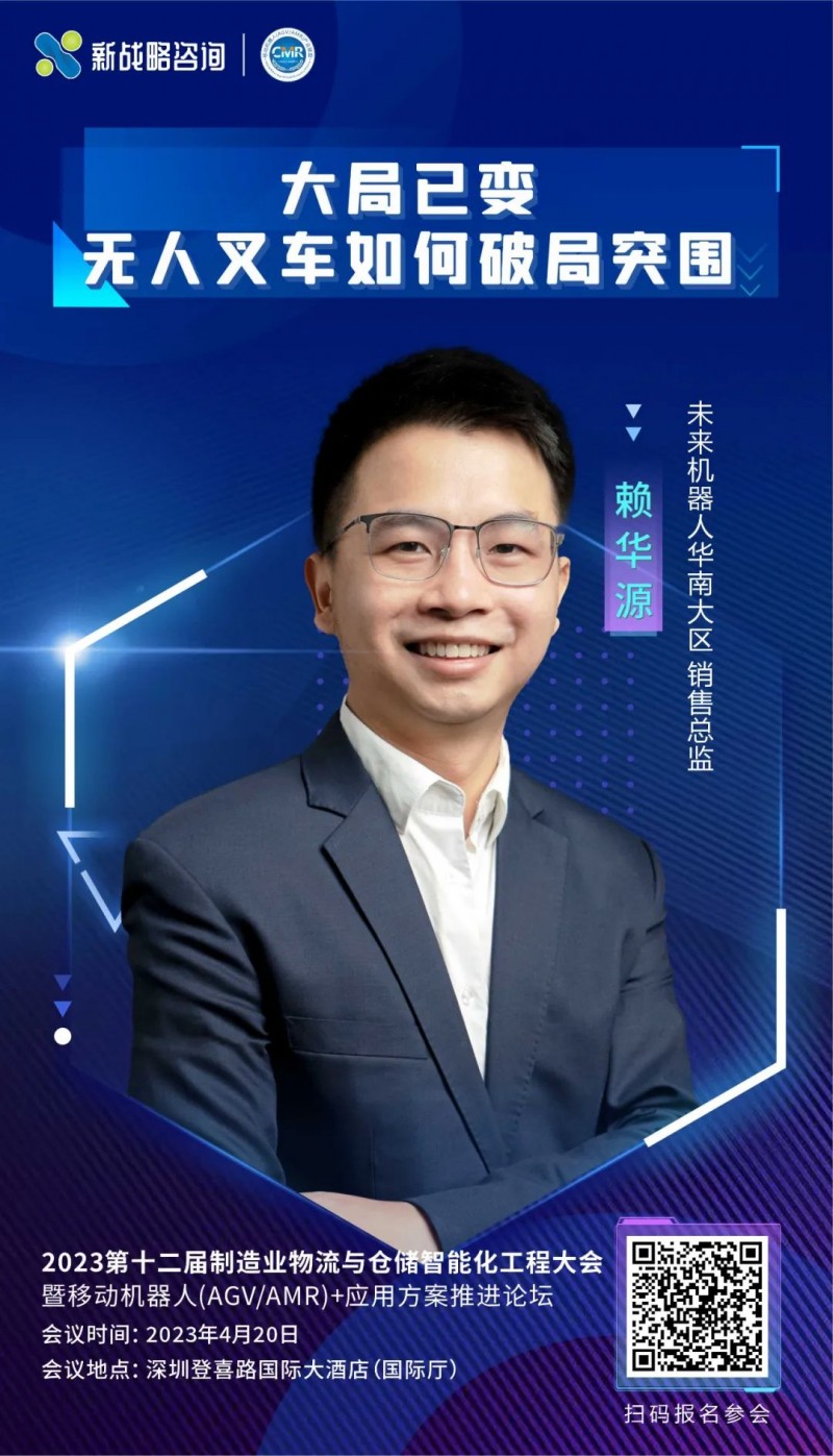 4月20日,在由新戰(zhàn)略移動(dòng)機(jī)器人以及新戰(zhàn)略咨詢聯(lián)合主辦的“2023第十二屆制造業(yè)物流與倉(cāng)儲(chǔ)智能化工程大會(huì)“上,未來(lái)機(jī)器人華南大區(qū)銷售總監(jiān)賴華源將帶來(lái)“大局已變,無(wú)人叉車如何破局突圍”主題演講,敬請(qǐng)關(guān)注!
