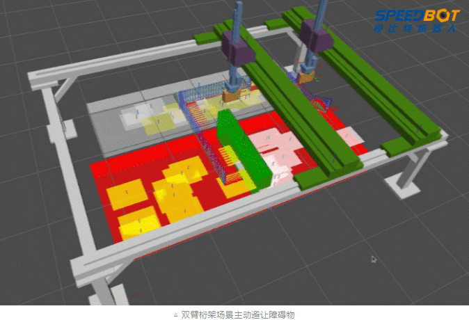 2)多臂共軸無碰運動規劃,實現多臂桁架機器人在共享工作空間內高速無碰、靈敏作業,無需人為干涉。