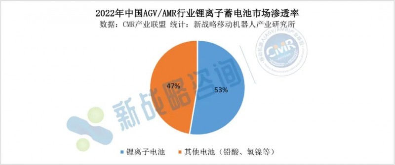 從市場滲透率來看,2022年,在AGV/AMR行業,鋰離子蓄電池的市場滲透率超過50%,已經成為行業應用的主流。