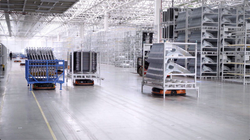 海康機器人:針對上述特性,海康機器人推出的柔性廠內(nèi)物流方案給行業(yè)帶來變革。該方案應(yīng)用移動機器人自主感知,結(jié)合視覺高效、準(zhǔn)確的讀碼、檢測功能,面向汽車行業(yè)尤其是新能源汽車行業(yè)打造覆蓋沖壓、焊裝、涂裝、總裝、三電等全工藝、全場景解決方案,推出智能檢收應(yīng)用,實現(xiàn)收貨、入庫業(yè)務(wù)的透明化管理。此外,通過系統(tǒng)平臺算法的持續(xù)迭代和優(yōu)化,實現(xiàn)多種車型集群協(xié)作、任務(wù)編排,實現(xiàn)柔性配送和精細(xì)管理。
