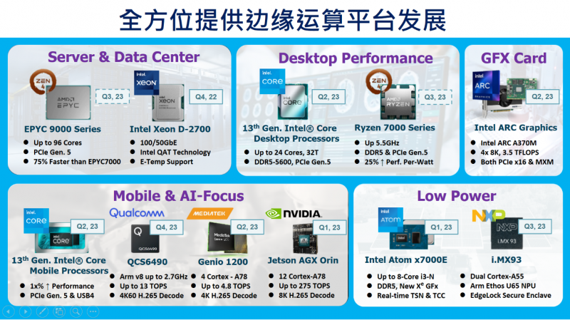 相對(duì)挑戰(zhàn)來(lái)說(shuō),張家豪對(duì)研華在嵌入式領(lǐng)域的未來(lái)發(fā)展持樂(lè)觀態(tài)度:“我們?cè)谶@個(gè)領(lǐng)域已經(jīng)有超過(guò)20年的經(jīng)驗(yàn),做得非常好。不僅提供標(biāo)準(zhǔn)平臺(tái)給客戶,還提供一系列的R&D服務(wù)和技術(shù)設(shè)計(jì)服務(wù)。此外,AI技術(shù)的引入為我們打開(kāi)了新的機(jī)會(huì)。AI不僅可以應(yīng)用于傳統(tǒng)的嵌入式領(lǐng)域,還可以推動(dòng)邊緣計(jì)算和嵌入式計(jì)算的發(fā)展。”