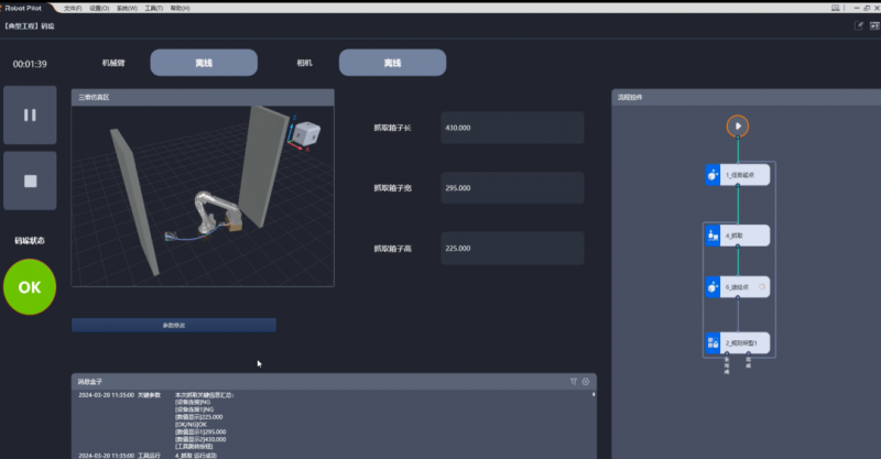 RP機器人視覺引導平臺可以提供多種抓取順序規則,通過拖拽式流程搭建和簡單的參數配置,實現偏置抓取、對中抓取、一拍多抓、一抓多箱、智能端拾器抓取IO分配等多種抓取方式的應用,滿足不同場景下對于抓取效率和生產柔性的個性化需求。