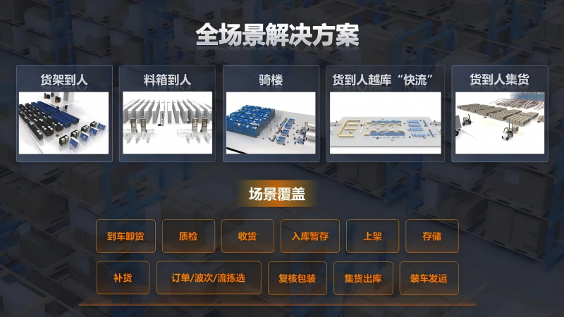 在場景應用方面,海康機器人通過大量的項目實踐,沉淀出貨架到人、料箱到人在內的多套成熟解決方案,覆蓋商業倉配的收貨、上架、揀選、分播、集貨發庫、越庫等場景。