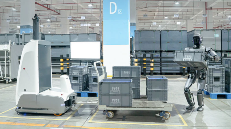 在英特爾視覺導航模塊的基礎上,極智嘉攜手英特爾在V-SLAM定位、復合檢測網絡、機器人跟隨等算法方面進行了深度創新。極智嘉純視覺機器人可確保環境感知、定位、跟蹤的精度與效率,幫助物流、倉儲服務提供商推動智慧物流轉型。UQI優奇發布了行業首個人形機器人與L4級無人物流車、工業移動機器人和智能制造管理系統協同作業的工業場景解決方案。