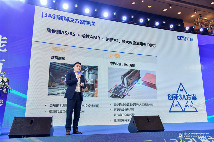 隨后,曠視作為企業(yè)代表,分享了醫(yī)藥物流最新解決方案,即國控廣州采用的3A智慧物流解決方案。具體來看,該方案通過智慧物流操作系統(tǒng)“曠視河圖“整體調(diào)度,將傳統(tǒng) AS/RS 自動(dòng)化物流系統(tǒng),與新興 AMR 柔性物流系統(tǒng)接口打通、有機(jī)集成,同時(shí)憑借曠視領(lǐng)先的底層 AI 技術(shù),將視覺感知和算法賦能預(yù)約收貨、單據(jù)識(shí)別、紙箱信息識(shí)別、存儲(chǔ)、復(fù)核、播種、裝車等醫(yī)藥物流的全流程環(huán)節(jié),切實(shí)幫助客戶降本增效、簡(jiǎn)化管理。
