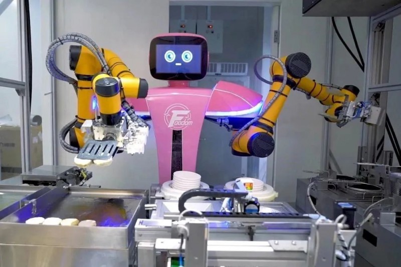 2022年,千璽機器人亮相冬奧智慧餐廳,在面積達到5400平米的智慧餐廳里,配備了120臺制餐機器人。